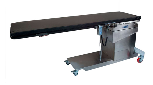 This table features a large radiolucent imaging area that is controlled by both a portable hand held control, and positioning control panel located on the table. The Height Adjustability, Trendelenburg Movements, X-Y Positioning, and Return to Level are all performed by these devices. The free-float feature is activated by a push-button release on the positioning control panel, which is located on the accessory rail. The X-Y Movements are vibration free due to the High Precision Heavy Duty Linear Bearings used, which allow for stable and precise positioning.